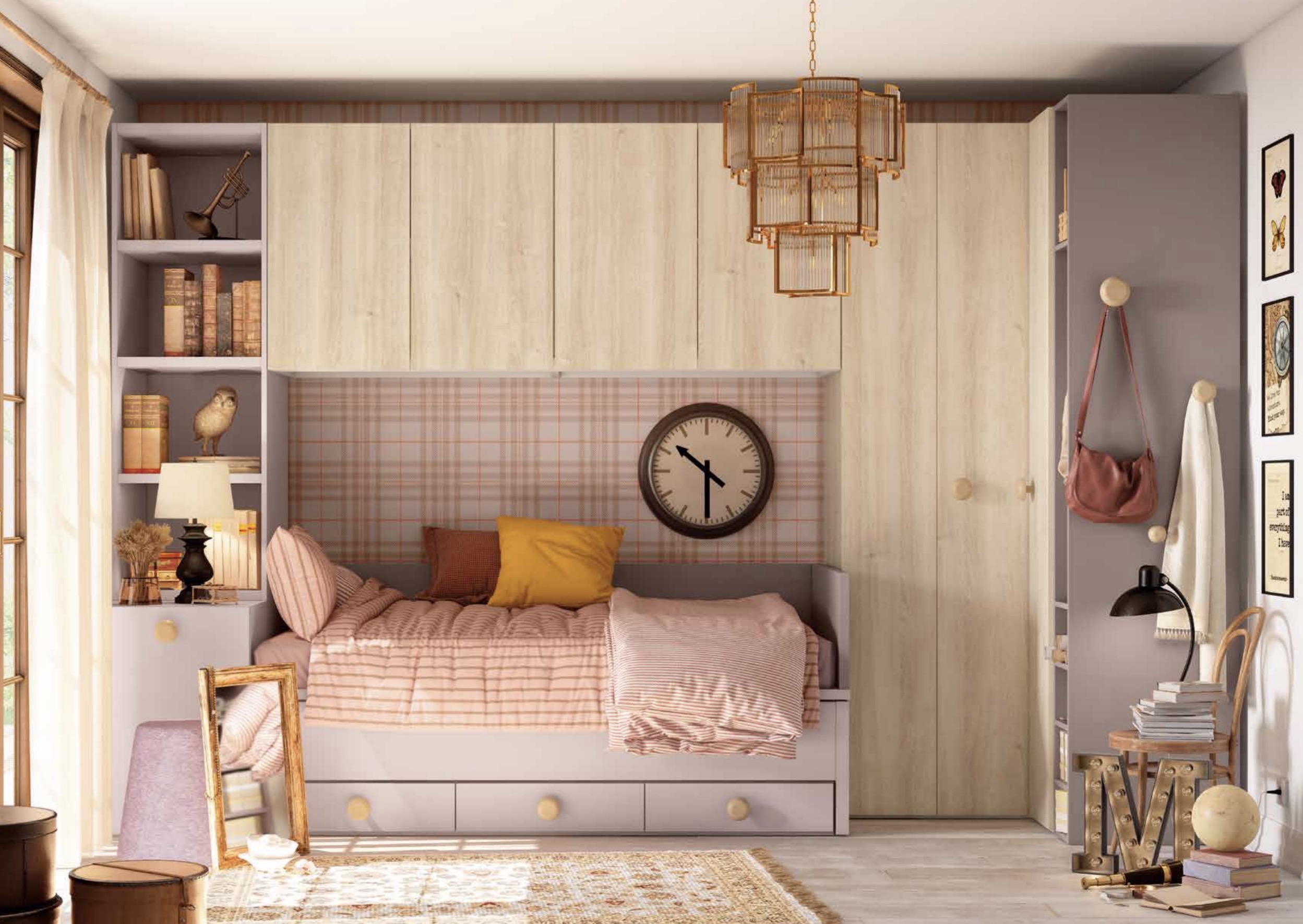 Compacto con cama oculta y cajones de 90×190