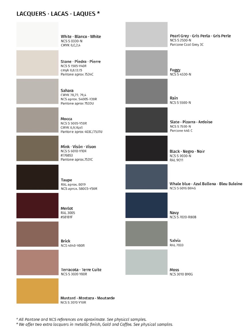 Ver elementos de la composición en la descripción del producto. Disponible en distintos colores y acabados.