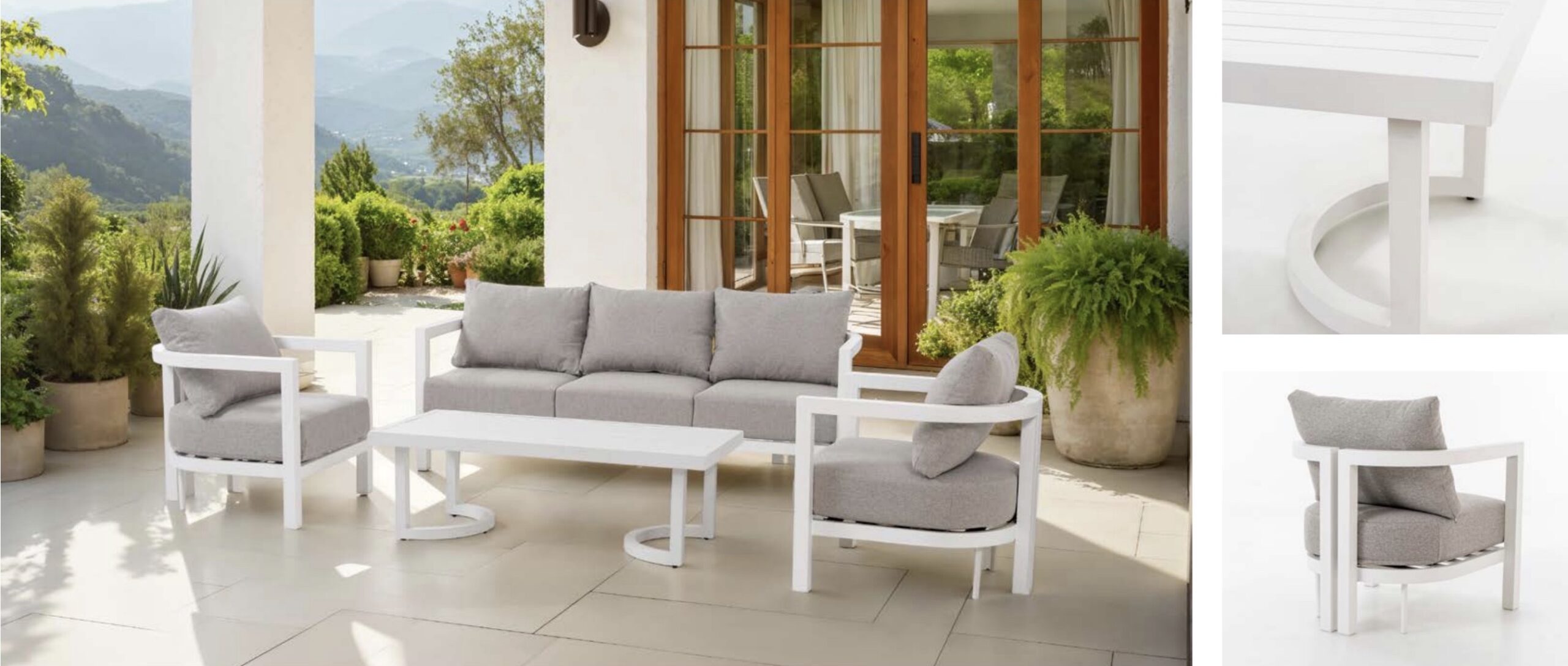 ALUMINIO: es el material utilizado en el montaje de estructuras y patas de los muebles. Se utilizan perfiles de diversas formas y medidas. ALUMINIO PINTADO EPOXI: Con resina epóxica como ligante para incrementar la resistencia a la corrosión, abrasión y a los agentes químicos.
