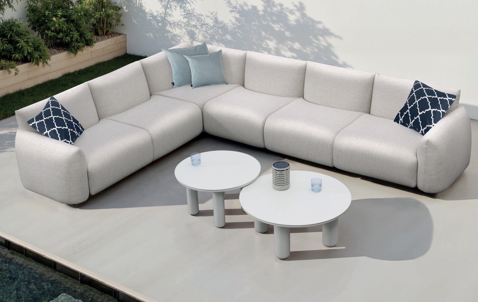 Fantástico sofa de exterior modular, líneas redondeadas muy modernas